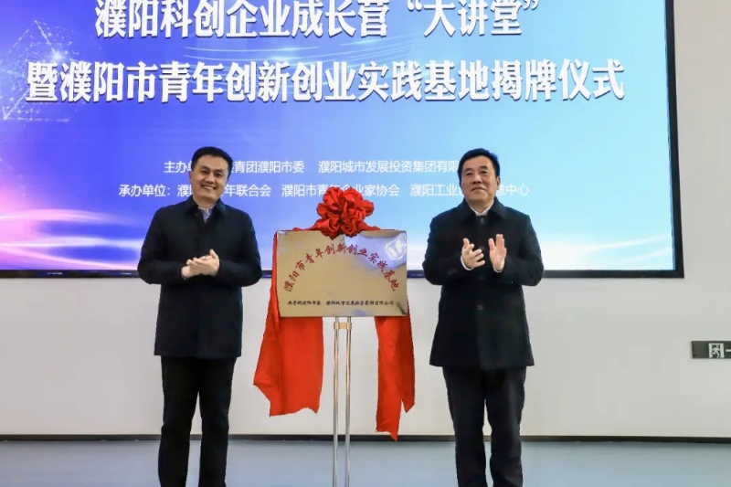 團(tuán)市委副書記閆兆敏、濮陽城發(fā)投集團(tuán)總經(jīng)理閆進(jìn)軒為濮陽市青年創(chuàng)新創(chuàng)業(yè)實(shí)踐基地揭牌。