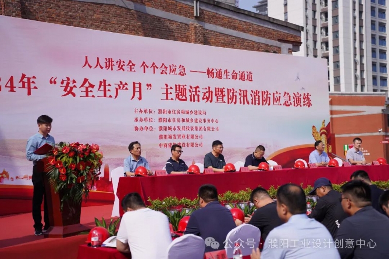 2024年6月15日上午,由濮陽住房和城鄉(xiāng)建設(shè)局主辦,濮陽住房和城鄉(xiāng)建設(shè)事務(wù)中心承辦,濮陽城市發(fā)展投資集團(tuán)有限公司、濮陽城發(fā)置業(yè)有限公司、中商建投建設(shè)有限公司協(xié)辦的2024年“安全生產(chǎn)月” 暨防汛消防應(yīng)急演練活動儀式在濮陽工業(yè)設(shè)計創(chuàng)意中心舉行,相關(guān)單位及施工人員200余人參加。
