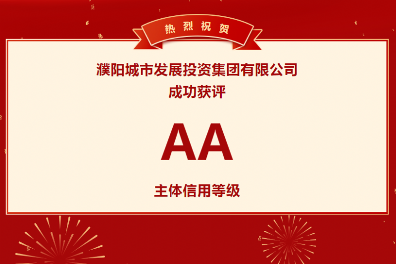 喜訊!濮陽(yáng)城發(fā)投集團(tuán)成功獲評(píng)AA主體信用評(píng)級(jí)