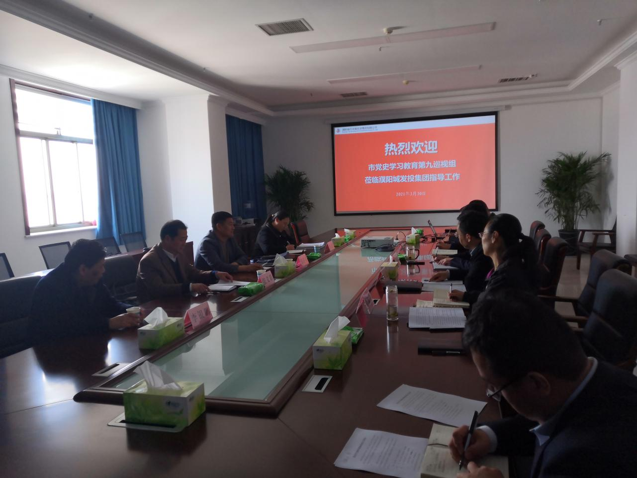 3月30上午10:30點(diǎn),濮陽城發(fā)投集團(tuán)黨史學(xué)習(xí)教育巡視座談會(huì)在集團(tuán)公司13樓會(huì)議室召開。市黨史學(xué)習(xí)教育第九巡回指導(dǎo)組、集團(tuán)公司黨史學(xué)習(xí)教育領(lǐng)導(dǎo)小組成員及領(lǐng)導(dǎo)小組辦公室部分同志出席會(huì)議。