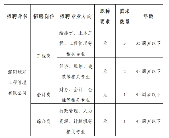 濮陽城發(fā)工程管理有限公司人才招聘公告
